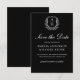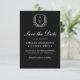 Formal Leafy Crest Monogram Black White Wedding Save The Date