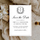 Capture the essence of sophistication with a formal floral crest monogram save the date wedding design. This elegant blend of timeless floral motifs and a personalized monogram crest adds a touch of refinement to your wedding décor and stationery. Ideal for couples seeking a classic yet distinguished style, the design enhances the overall atmosphere of grace and luxury. Perfect for formal weddings, this cohesive and delicate aesthetic will leave a lasting impression, reflecting the beauty and importance of your special day.