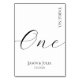 Formal Minimalist Script Black & White Wedding Table Number