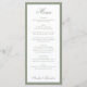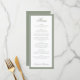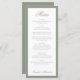 This formal wedding menu features a soft muted sage green border paired with elegant script typography on a clean white background. Designed to showcase your courses with timeless sophistication, it adds a polished touch to reception tables and place settings. Ideal for classic, garden, and modern weddings, this menu complements neutral palettes and sage green décor for a cohesive, refined celebration.