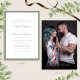 Yes, you can print on the back of your invitation for free! Most designs already have a corresponding design on the back that can be personalized using the Design Tool and going to Layers. This is a great way to communicate more information or further personalize your Formal Classic Sage Green Script Photo Wedding Invitation. The option is really up to you.