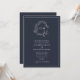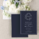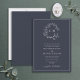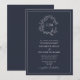 Formal Navy Blue Leafy Crest Monogram Wedding Invitation