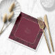 Elegant wedding napkins in a more formal style featuring a classic layout of gold frames and text with an ornate paisley border in shimmering burgundy. Add your names in this beautiful script font and wedding date in a classic serif with it's traditional appeal. Search ID767 to see other color choices for this design.