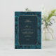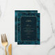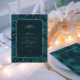 Elegant wedding reception menu in a more formal style featuring a classic layout of gold frames and text with an ornate paisley border. This example adds a modern touch with it's background in shimmery teal. Add your event details in a serif font for it's traditional appeal.The menu shown here also features a template to easily add your menu selections, initials and wedding date. Search ID767 to see other color choices for this design.