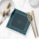 Elegant wedding napkins in a more formal style featuring a classic layout of gold frames and text with an ornate paisley border in shimmering teal. Add your names in this beautiful script font and wedding date in a classic serif with it's traditional appeal. Search ID767 to see other color choices for this design.