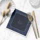 Elegant wedding napkins in a more formal style featuring a classic layout of gold frames and text with an ornate paisley border in shimmering navy blue. Add your names in this beautiful script font and wedding date in a classic serif with it's traditional appeal. Search ID767 to see other color choices for this design.