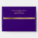 Elegant all-purpose envelope done in rich purple, with graphics of gold bands on the front and on the edge of the flap. Inside the envelope there is graphics of a solid gold lining. Personalize the return address to suit your needs. Great for special occasion invites, thank you cards and announcements.