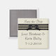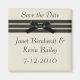 Elegant save the date magnet in soft beige with a black striped ribbon and black bow going across. Customize with your information as a lovely way to announce your upcoming marriage.
