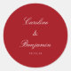 Stylish Formal Classic Traditional Script Elegant Wedding Invitation Custom Classic Round Sticker in Red and White