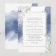 Formal White, Navy Blue Floral Watercolor Wedding Invitation