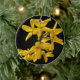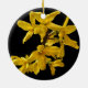 This holiday ornamen features golden yellow forsythia flowers on a pure black background. Forsythias are one of the earliest blooming shrubs in spring. When this flower shows its bright gold petals in the garden, we know that winter is gone for another year.
