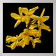 This fine art photography poster features golden yellow forsythia flowers on a pure black background. Forsythias are one of the earliest blooming shrubs in spring. When this flower shows its bright gold petals in the garden, we know that winter is gone for another year.