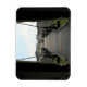 A unique photograph, taken from the inside of the Castillo de san Marcos Fort in St. Augustine Florida looking out across the drawbridge to the castle entrance. the coquina walls of the fort frame the composition.