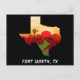Texas state outline with a unique design postcard to send to your friends and loved ones from Fort Worth!