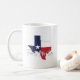 Fort Worth, Texas flag map coffee mug. This design features "Fort Worth" in a script, calligraphy style font in white with light grey outline on top of the map of the state that's filled with the flag of Texas. This hometown coffee mug is a great way to enjoy your coffee and to show that you are proud to be from Fort Worth, TX.
