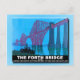 A restored version of the Forth Road Bridge poster. A colorful vintage train travel poster showing the bridge in twilight with passenger car lights visible crossing the bridge.