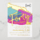 Bold abstract art brush strokes in pink, purple and blue with gold foil or your own foil color photo template business 40th anniversary party invitation. Personalize with your own anniversary party event details, and a photos of your business or products on the reverse. © Original design by Sarah Trett for www.mylittleeden.com on Zazzle.