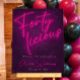 Minimalist Welcome Sign with Neon lights design and Fuschia Pink color were used on the the title to give the invitation a tantalizing look with dark violet granite like texture on the background to match.