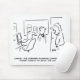 Funny obvious cartoon joke in black and white on a mouse mat. Secretary says the "Forward Planning Conference" has to be canceled because someone forgot to book the hotel. Fun gift idea for an office employee is involved in making decisions.