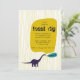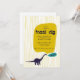 A modern dinosaur themed invitation with a brachiosaurus inviting friends to a fossil dig for a boy's birthday