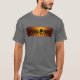 My 11 yo wore adult XL (5’7” 165#). The 8yo is small framed. She wore adult small and tied it in the back. Grandma wore adult large with long sleeve shirt underneath. Tall girl adult medium. Dark haired male adult large. Good quality dark Heather gray, Gildan brand shirt. -it was next up from basic choice and cost about $20 per shirt. Not too thick or thin. Washed and dried well, no major shrinkage. Not see-through. Can wear a bra under it fine. Screen print is just as shown and well done, front and back.