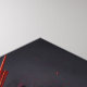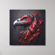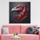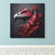 A striking artwork capturing the head of a majestic condor like a fossil in granite. The abstract art style in vibrant blood red and charcoal creates a dramatic scene. With a close-up, zoomed perspective, the portrayal evokes a sense of awe, showcasing the regal beauty of this magnificent bird frozen in time.