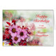 A birthday card for your foster daughter. Pink hellebore flowers, also known as the christmas rose, set against a background of red leaves from the cotinus shrub.