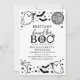 She found her boo! Celebrate our magical bride-to-be with a bachelorette invite featuring stars, ghosts, a disco ball, bats, and drinks against a white background. Perfect for a spellbinding night out!