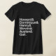 My overall review is that the T-shirt is nice, it fits true to size however the font is significantly smaller than advertised and you can't read it. The printing is unreadable and there is a strain to read it. It does not look like the advertised product. Maybe the shirt color is darker or a larger more visible font should have been used. Photos with and without flash and font is barely legible.