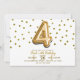 Four 4 Gold Balloon & Confetti 4th Birthday Party Invitation