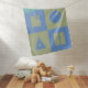 Four letter baby name baby blanket for a newborn baby and its parents in neutral orange blue green beige colors. The 4 letters are customizable adjusting to the kids name. The letters are chosen in a cute font so that it looks childishly figurative.