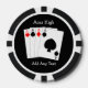 Poker chips four aces design. You can customise these poker chips with any text of your choice. Should you require any help with customising then contact us through the link on this page. Four aces design personalised poker chip