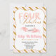 Plain white envelopes are included with paper invitations and will come to fit the invitation size you select. If you don’t need the envelopes, you may choose to not receive them by selecting the dropdown below "Envelopes" and choosing "None." If you’d like to have a design on your envelopes, you can browse all of these available envelopes to find the design that complements your Four And Fabulous Birthday Invitation.