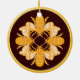 Four bees on dark rich brown gold rim circle ceramic ornament