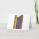 Whether you are a bookworm yourself or know someone who likes to read this is the perfect design. This design features four books standing up next to each other with the spines of the books showing. Each book is a different height and color. This four books design looks great on these greeting cards