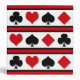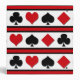 Set of card suit icons isolated on black, red and white striped background