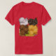 My 11 yo wore adult XL (5’7” 165#). The 8yo is small framed. She wore adult small and tied it in the back. Dark haired male wearing adult large and female wearing adult medium. Good quality dark Heather gray, Gildan brand shirt. -it was next up from basic choice and cost about $20 per shirt. Not too thick or thin. Washed and dried well, no major shrinkage. Not see-through. Can wear a bra under it fine. Screen print is just as shown and well done, front and back. They printed random cupcake image I downloaded from internet with no problems! Looked perfect! Front design was stock from zazzel.