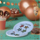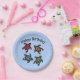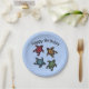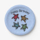 This paper plate is light blue with four colourful turtles in re, yellow, green, and blue with abstract markings on their shells. Customise the Happy Birthday text with the templates.