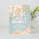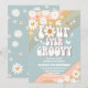 Celebrate your childs special day with this retro-inspired "Four Ever Groovy- birthday invitation. Featuring pastel wavy stripes, daisies, peace signs, butterflies, and bold 70s-style lettering, this playful design brings peace, love, and fun to any party. Perfect for kids birthdays, this hippie-themed invite adds a nostalgic yet modern charm that guests will adore. Customize with your details and set the tone for a colorful, unforgettable celebration.