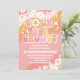 Celebrate your little ones special day with this retro groovy birthday invitation! Featuring playful wavy stripes in pink, orange, and peach with daisies, hearts, butterflies, and peace signs, this design captures the fun spirit of the 70s. Perfect for kids parties, this customizable invite adds a colorful, nostalgic touch while keeping details clear and engaging. Make your childs birthday unforgettable with this vibrant hippie-inspired keepsake.