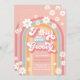 Four Ever Groovy Boho Daisy Rainbow 4th Birthday Invitation