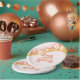 Retro inspired Four Ever groovy 4th birthday party plates with 70's style daisies and boho fonts and colors.
