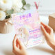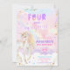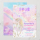 FOUR ever Magical Rainbow Unicorn Gold Birthday Invitation