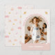 Four Ever Magical thank you card, unicorn 4th birthday photo thank you designed to send a heartfelt message after a magical celebration. Featuring a soft arch photo frame, delicate scalloped details, and hand-painted unicorns, rainbows, clouds, and stars, this card creates a sweet and memorable keepsake.