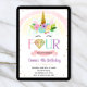 Having your Four Ever Unicorn Birthday Invitation match the theme of your party is a great detail that your guests will appreciate. The thoughtfulness of a consistent party theme is often appreciated and can show your guests that you can host a cohesive event.