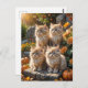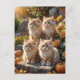 Four Fluffy Autumn Kittens with Pumpkins and Mums Postcard