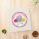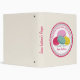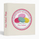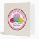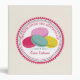 A recipe binder featuring an illustration of four French macarons (purple, pink, blue, and yellow) inside a decorative pink and blue circle with pink text "Recipes From The Kitchen Of." Personalize the text on front and spine.