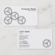 A business/profile card template with a stylish four gear wheel motif on the front. Company name and business type on the front top right. Name and all other contact on the reverse with a single gear motif in the bottom right. Ready to be customized with your details, suitable for many types of business.