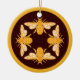 Four honey bees on pattern in circle ceramic ornament