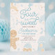 Sweet Christmas cookiebirthday boy party invitation with gingerbread and festive holiday colors for a winter celebration.